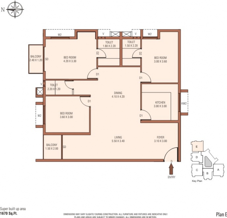 Provision for AC in three bed rooms & living room.